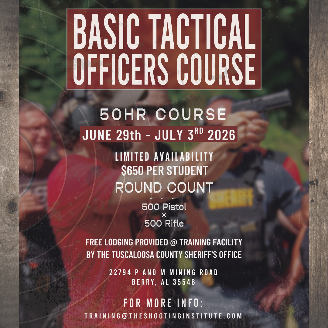 Registration is now open for our Basic Tactical Officers Course. Training will take place June 29th - July 3rd. Email training@theshootinginstitute.com to register.